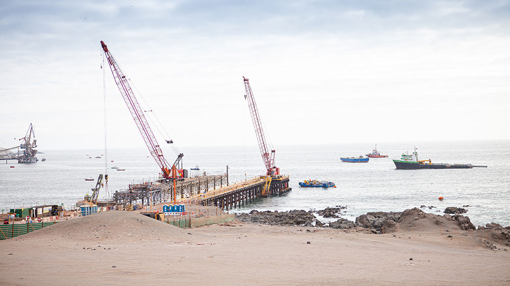 Características: Compañía Minera Teck Quebrada Blanca S.A. (Quebrada Blanca), en su proceso de expansión de la mina existente Quebrada Blanca que produce concentrados de cobre y molibdeno, esta construyendo una nueva instalación portuaria para deshidratar el concentrado y cargar el concentrado en los barcos. La nueva instalación portuaria está ubicada en las instalaciones portuarias Quebrada Blanca Fase 2, al norte de Punta Patache, Chile.